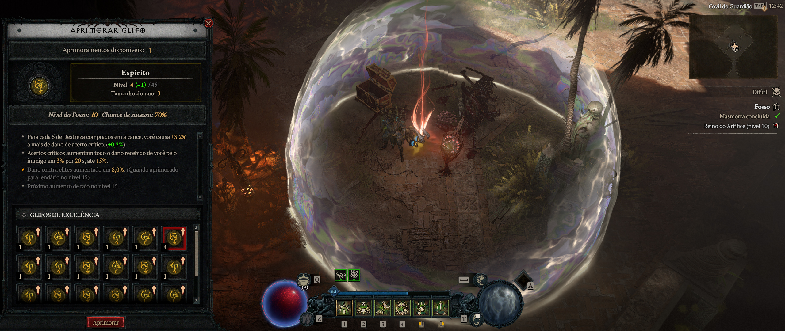 No Salão Espiritual, você pode turbinar seu gameplay com talentos que fazem o combate ferver. Os guardiões oferecem uma variedade de habilidades que vão de defesa a ataque e agilidade, permitindo que você ajuste seu estilo de jogo como quiser.
