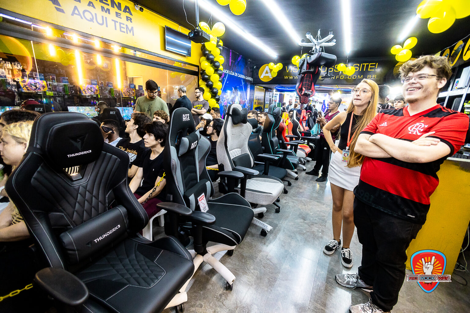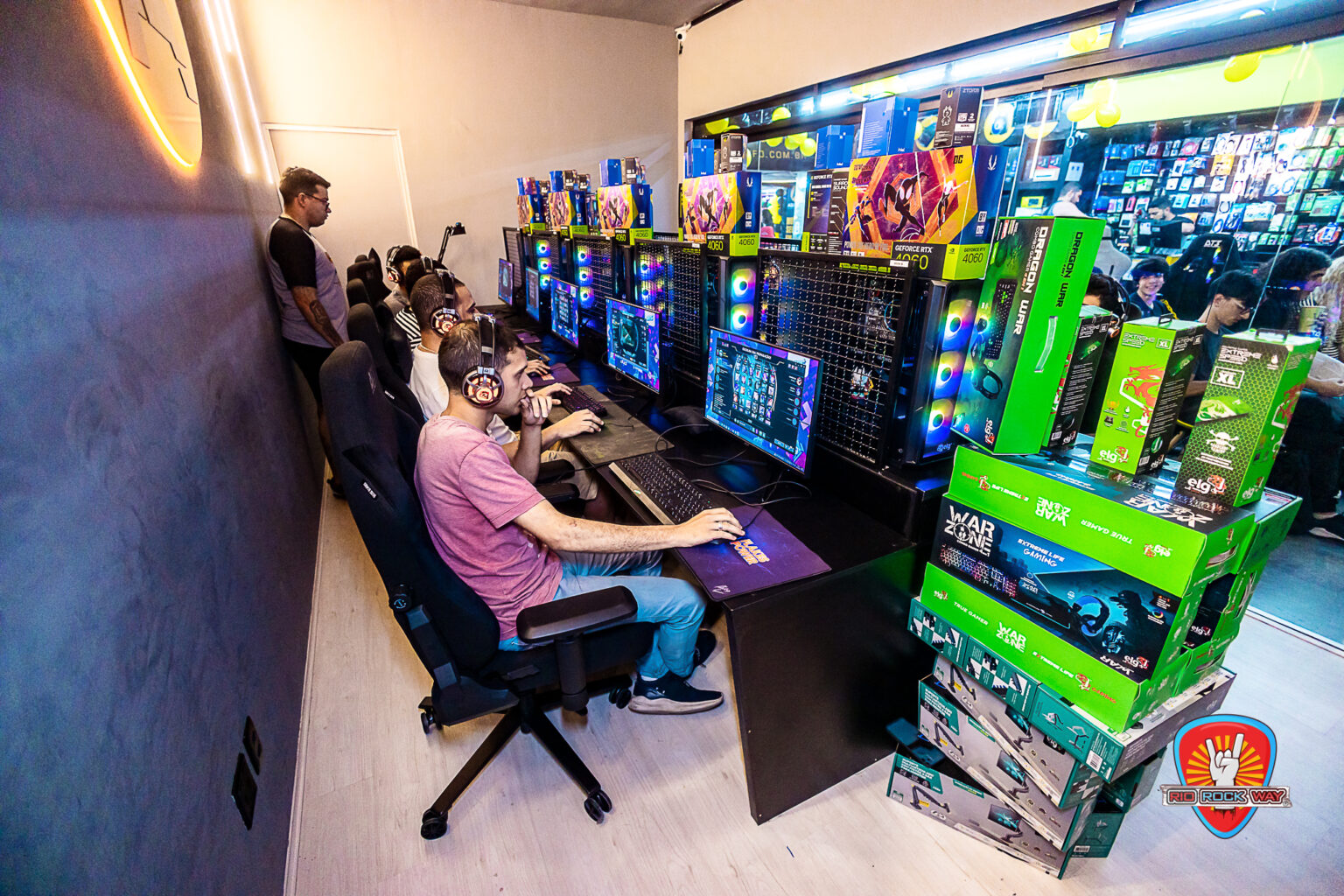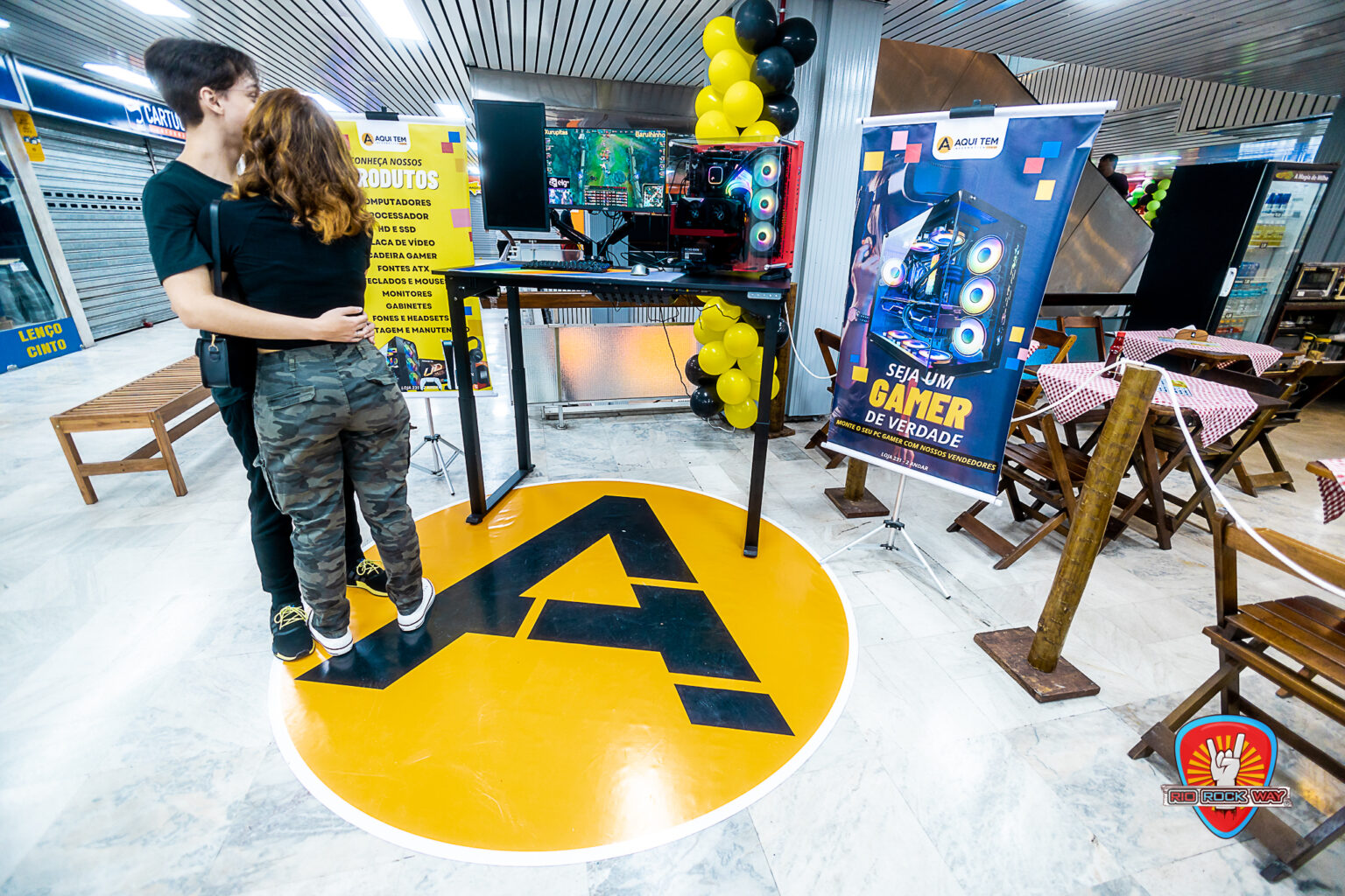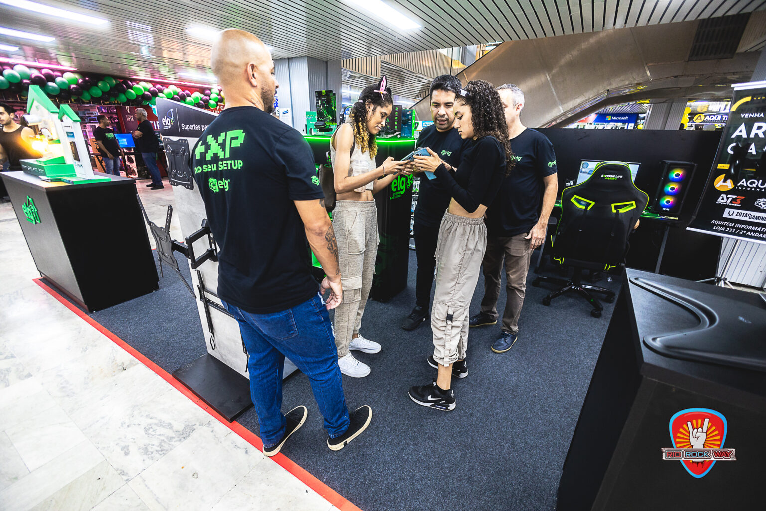 Mas não foi só de exposição que o evento viveu. Havia computadores gamer prontos para aquela jogatina com os amigos, além de um torneio de League of Legends dentro da loja parceira Aqui Tem. E o melhor de tudo? As estações de jogo eram equipadas com os melhores produtos gamer da ELG. Você podia testar os equipamentos de ponta e sentir a diferença.