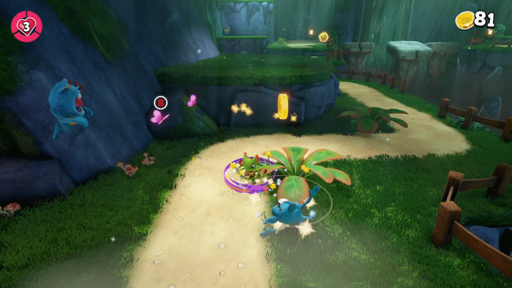 Yooka-Replaylee me lembrou instantaneamente do que faz os 3D platformers serem meu vício desde os anos 90. Além disso, a desenvolvedora Playtonic, com sede no Reino Unido, mostra coragem e carinho ao revisitar seu próprio universo, transformando o original em uma experiência mais moderna e refinada. Enquanto isso, o humor britânico e o charme da dupla permanecem intactos, reforçando o impacto emocional da aventura.